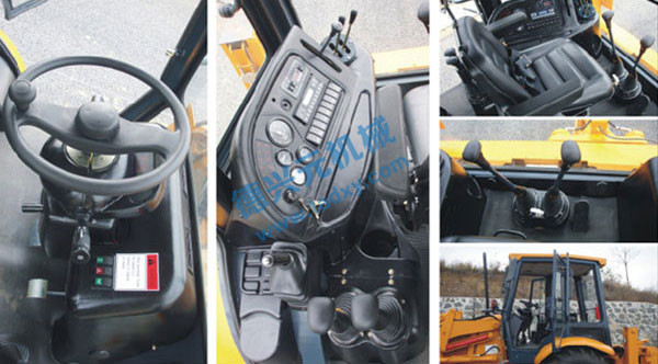 合理布置的操作手柄和儀表,工作狀態一目了然,將操作手疲勞強度降低;角度可調式方向機,配合可調式豪華座椅,適合不同體形的司機操作。